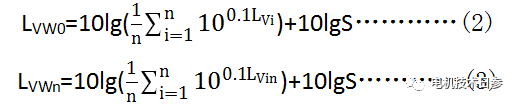 (2)通過(guò)振動(dòng)速度方法,具體根據(jù)公式(2)和(3),測(cè)量空載時(shí)的速度功率水平LVW0和施加指定負(fù)載時(shí)的速度功率水平LVWn。