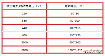 由試驗電源容量估算的外加電壓調(diào)整范圍應(yīng)為被試電機額定電壓的10%~60%。對于100千瓦以下的電機,電源輸出電流應(yīng)為額定電流;電機的1.4~1.7倍,100千瓦以上的電機電源輸出電流應(yīng)為額定電流的1.2~1.5倍。堵轉(zhuǎn)試驗的電源為短期運行,連續(xù)定額的供電設(shè)備可超負荷50%。