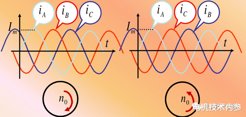 當A相的連接保持不變時,B相和C相的連接互換,自然定子磁場就是A-B-C逆時針旋轉。