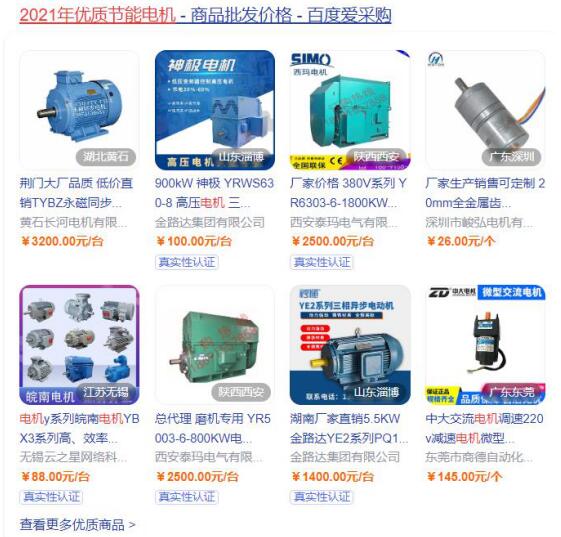 (百度愛采購搜索得出2021年優質節能電機價格)