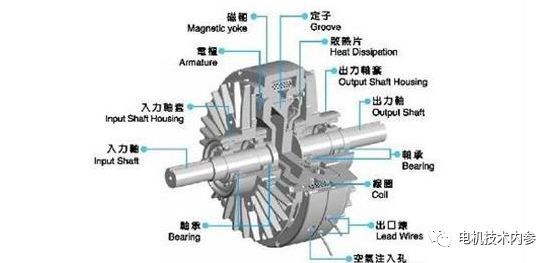 在電磁調(diào)速的的核心是電磁滑差離合器中,極性相對固定、N極和S極交替分布的爪極在異步電機的驅(qū)動下旋轉(zhuǎn),固體電樞的磁力線被切割而感應出渦流,在爪極磁場的作用下旋轉(zhuǎn),驅(qū)動輸出軸輸出機械動力。通過調(diào)節(jié)爪極勵磁電流,可以調(diào)節(jié)渦流磁場與爪極磁場的耦合程度或速度差,從而實現(xiàn)調(diào)速。如果固體電樞的轉(zhuǎn)速與爪極磁場的轉(zhuǎn)速同步,就不可能感應出渦流,固體電樞就失去了旋轉(zhuǎn)的原動力——電磁力,所以也叫電磁轉(zhuǎn)差調(diào)速電機。不難想象,這種電機是一種組合結(jié)構(gòu),主要由拖動電機、電磁滑差離合器和測速發(fā)電機組成。測速發(fā)電機將轉(zhuǎn)速信號反饋給控制器,與控制器設定的轉(zhuǎn)速進行比較,并發(fā)出指令增加或減少固體電樞的轉(zhuǎn)速。