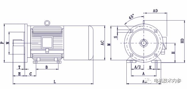 安裝方法見簡述B3、B5、B35均為水平安裝。主要區別是B3安裝有底座,B5安裝有法蘭端蓋,B35安裝有底座和法蘭端蓋。