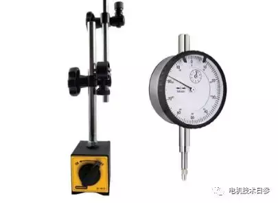 將百分表的磁座吸附在靠近被測(cè)點(diǎn)的鐵質(zhì)平臺(tái)或電機(jī)端蓋上,在吸附過(guò)程中保證其牢固性,防止因吸附不可靠而損壞量具。